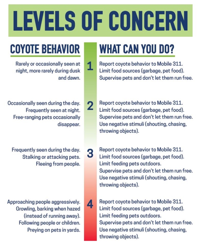 5. REPORT aggressive, fearless coyotes immediately to Mobile 311.