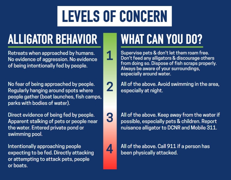 6. Report nuisance alligators. If you believe a particular alligators presents a genuine threat to public safety, contact your local Wildlife and Freshwater Fisheries office.